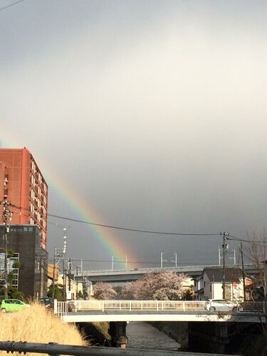 I happened to see the rainbow after the heavy rain in the evening.It was very chilly and low temperature though the cherry blossoms are in bloom.Thick clouds were hinging all over the sky but the slightly sunlight reflected on the moisture…